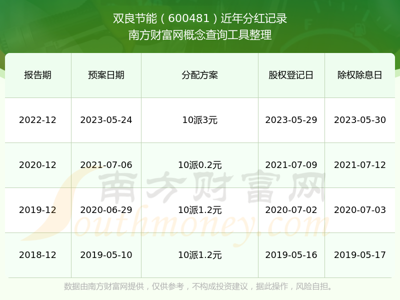 雙良節(jié)能最新一次公布的分紅方案為10派3元。本次權(quán)益分派股權(quán)登記日為2023年5月29日,除權(quán)除息日為2023年5月30日,派息日為2023年5月30日。