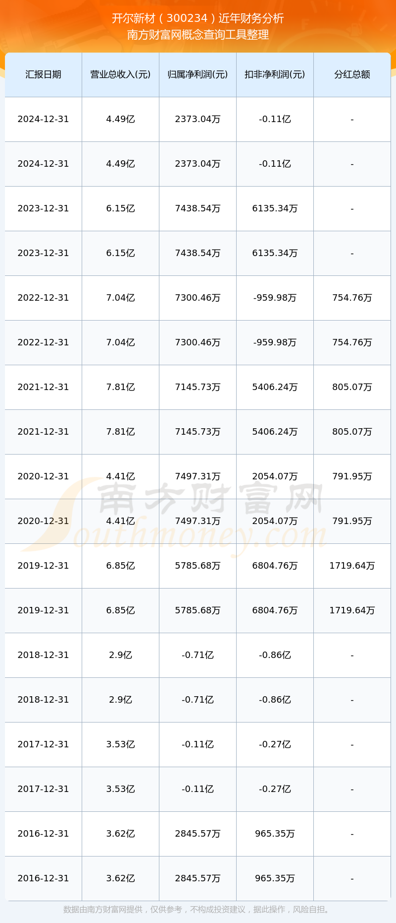 近年開(kāi)爾新材分紅派息情況如下表所示: