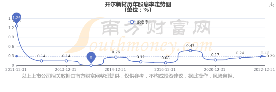 開(kāi)爾新材歷年股息率走勢(shì)如下圖: