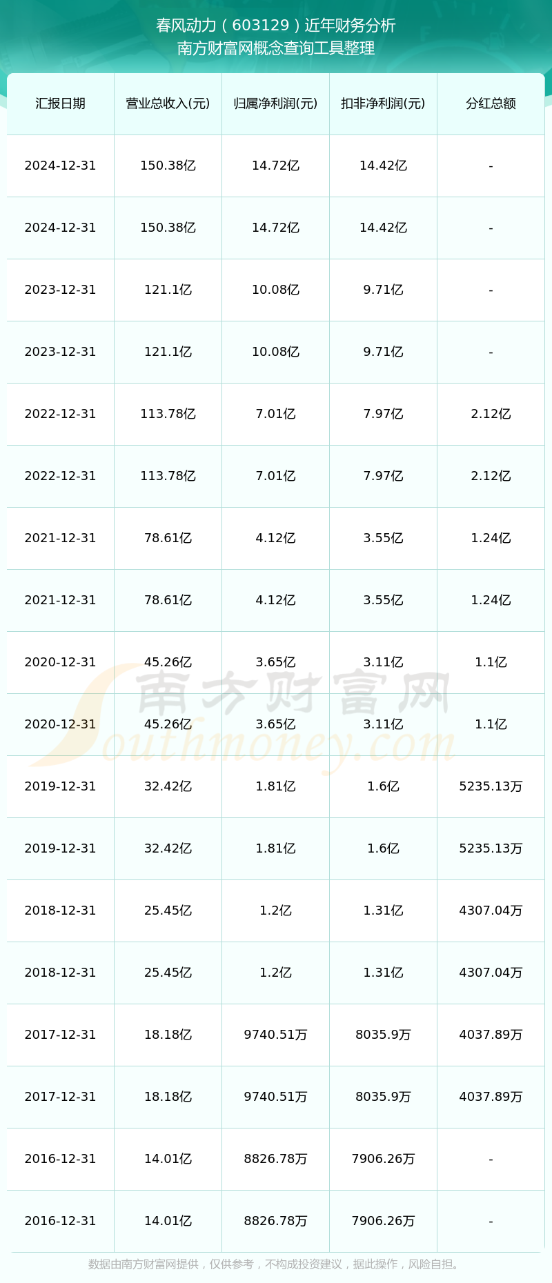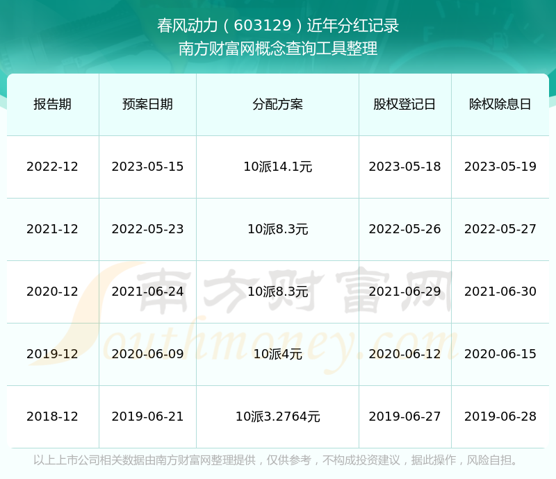 近年春風(fēng)動(dòng)力分紅派息情況如下表所示: