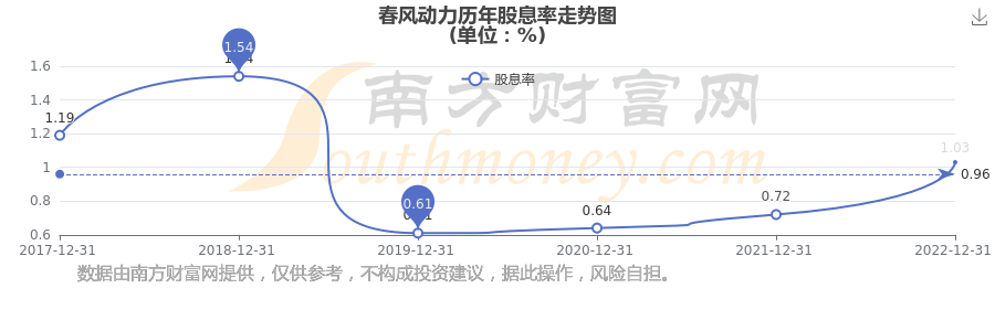 春風(fēng)動(dòng)力歷年股息率走勢如下圖: