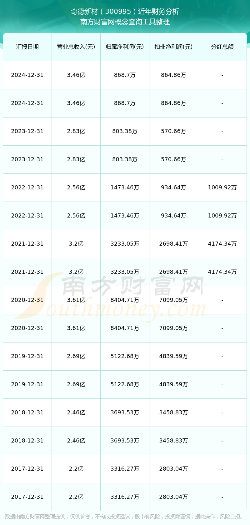2024年奇德新材總營(yíng)收3.46億,同比增長(zhǎng)22.2%;凈利潤(rùn)868.7萬(wàn),同比增長(zhǎng)8.13%;銷售毛利率22.8%。