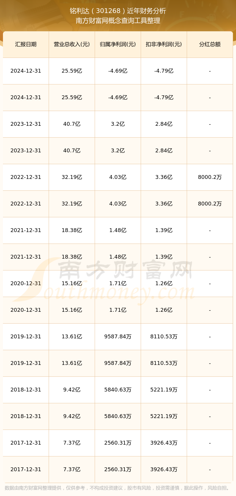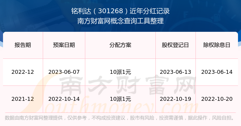 銘利達(dá)歷年分紅派息情況如下表所示: