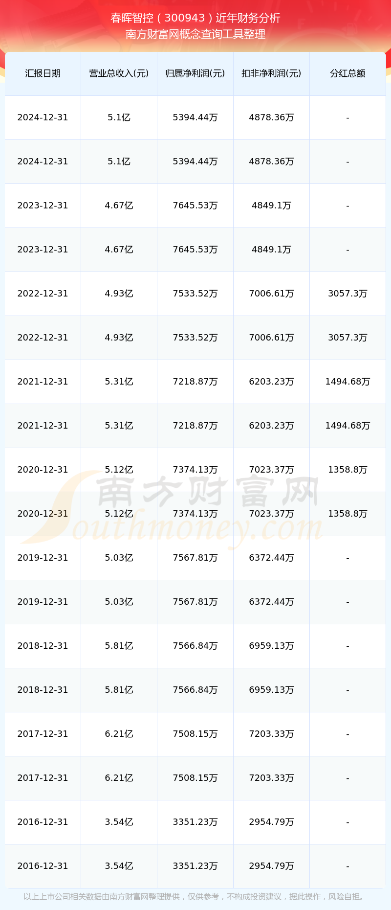 2024年春暉智控總營(yíng)收5.1億,同比增長(zhǎng)9.25%;凈利潤(rùn)5394.44萬(wàn),同比增長(zhǎng)-29.44%;銷(xiāo)售毛利率26.39%。