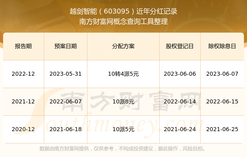 越劍智能最新一次公布的分紅方案:10轉(zhuǎn)4派5元。