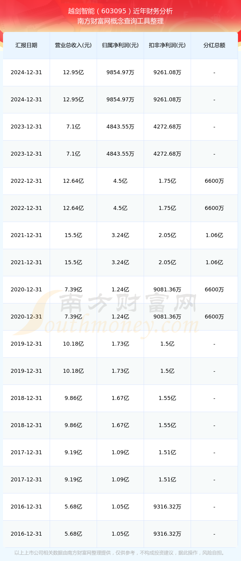 2024年報(bào)顯示,越劍智能實(shí)現(xiàn)營(yíng)收12.95億,同比增長(zhǎng)82.32%;凈利潤(rùn)9854.97萬(wàn),同比增長(zhǎng)103.47%;毛利率13.51%。