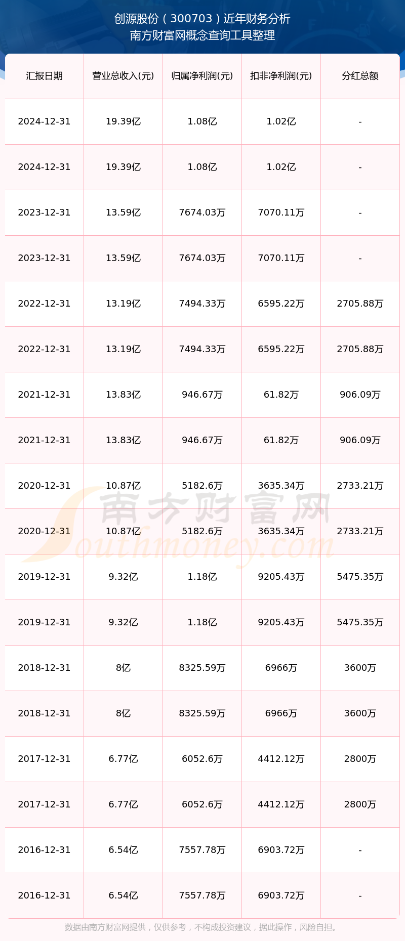 創(chuàng)源股份歷年分紅派息情況如下表所示: