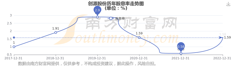 創(chuàng)源股份歷年股息率走勢如下圖: