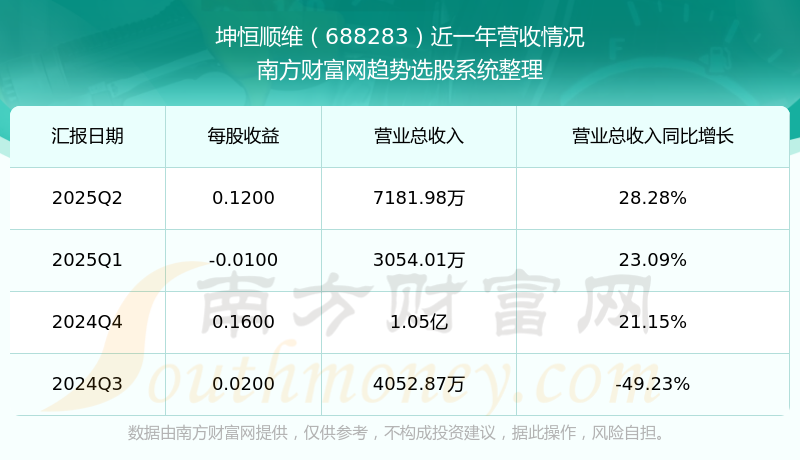 于2025年第二季度,坤恒順維披露了其業(yè)績表現,其中主營業(yè)務收入7181.98萬元,相較于去年同期28.28%。此外,公司歸屬于母公司的凈利潤為1353.59萬元,同比增長了23.44%。在扣除所有非經常性損益后,凈利潤1035.16萬元,同比增長27.24%。