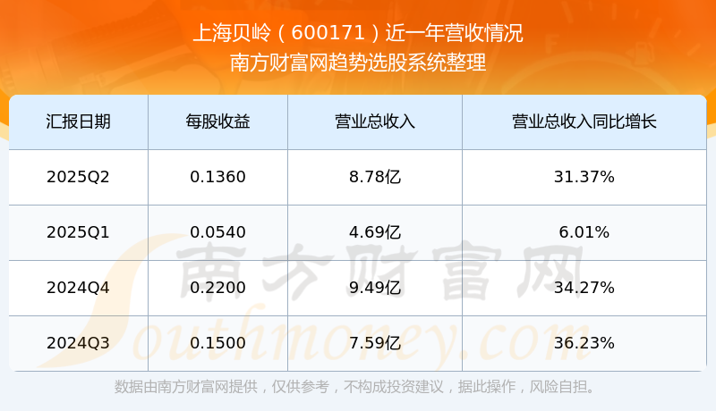 上海貝嶺股票近一年營收情況如下表:
