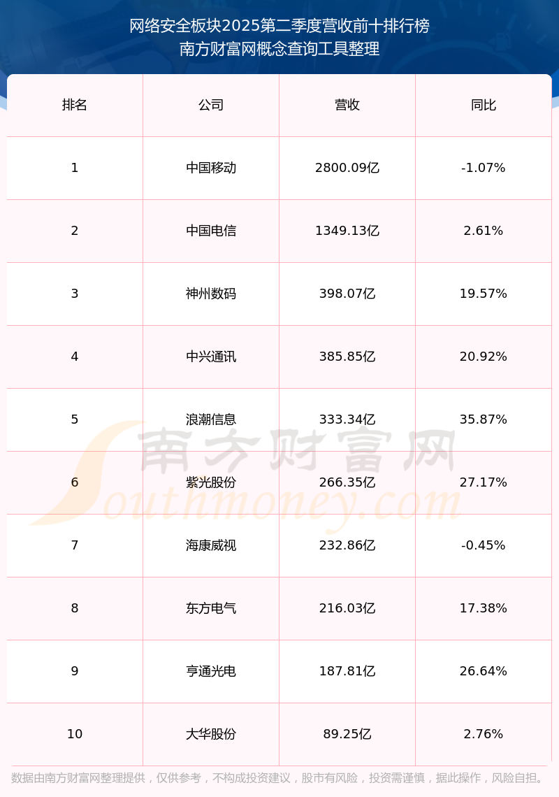 按照南方財(cái)富網(wǎng)概念查詢工具統(tǒng)計(jì),該股所屬板塊為網(wǎng)絡(luò)安全板塊,該板塊共有179只股票,亞信安全2025第二季度營(yíng)收在該板塊中排名為第30名,該板塊2025第二季度營(yíng)收排名前十的股票如下表: