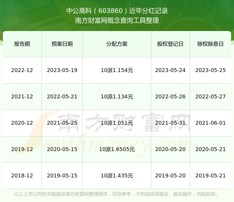 中公高科最新一次公布的分紅方案:10派1.154元。