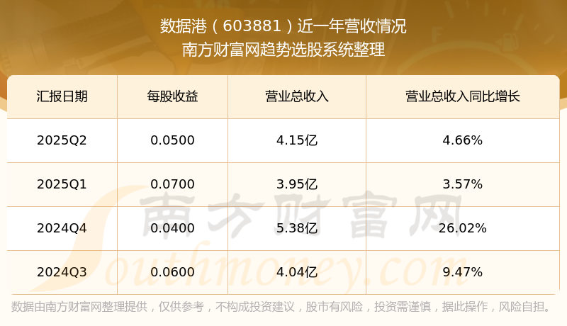 數(shù)據(jù)港2025年第二季度報(bào)告顯示,公司實(shí)現(xiàn)主營業(yè)務(wù)收入4.15億元,較去年同期增長4.66%;歸屬于母公司股東的凈利潤為4090.26萬元,同比增長17.45%;扣除非經(jīng)常性損益后的凈利潤為2957.79萬元,同比增長-6.82%。