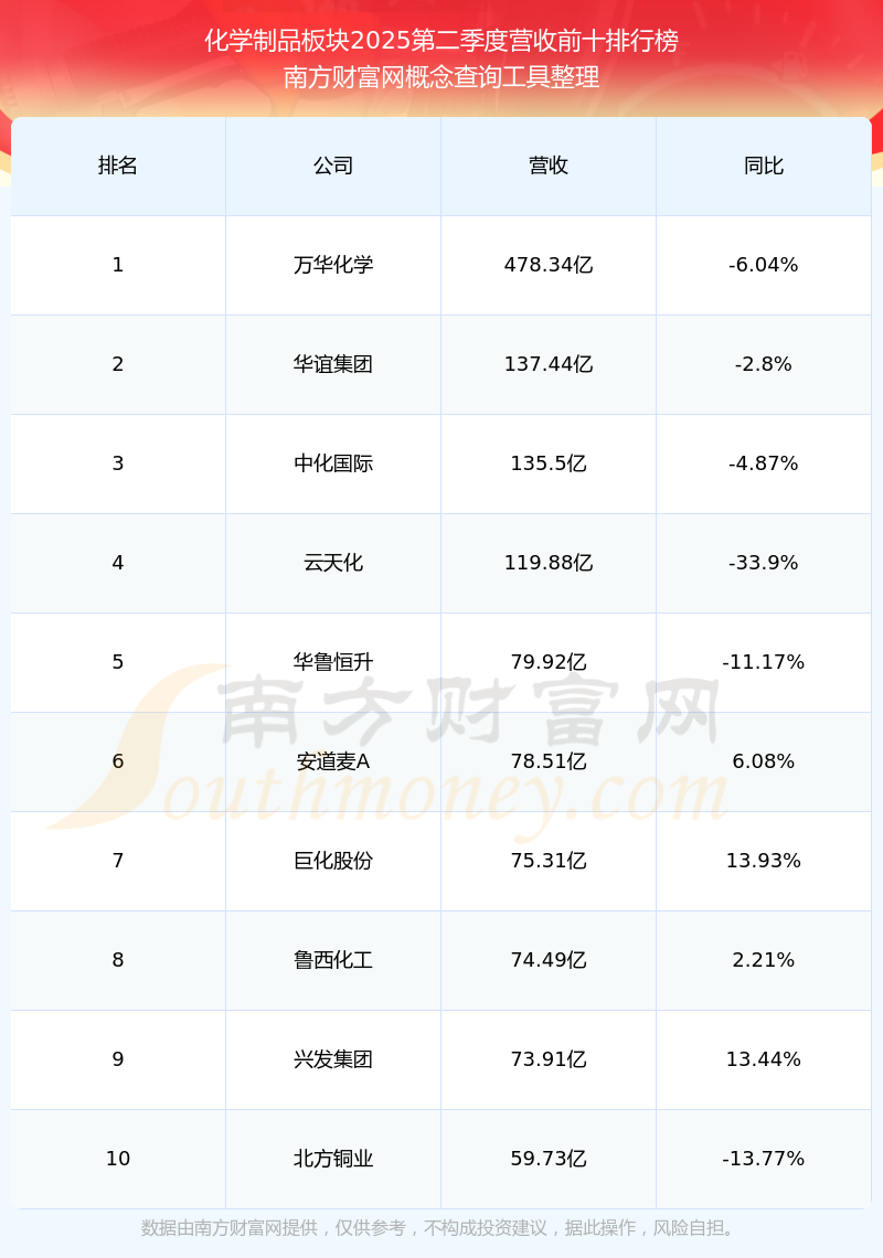 按照南方財(cái)富網(wǎng)概念查詢工具統(tǒng)計(jì),該股所屬板塊為化學(xué)制品板塊,該板塊共有226只股票,永冠新材2025第二季度營收在該板塊中排名為第34名,該板塊2025第二季度營收排名前十的股票如下表: