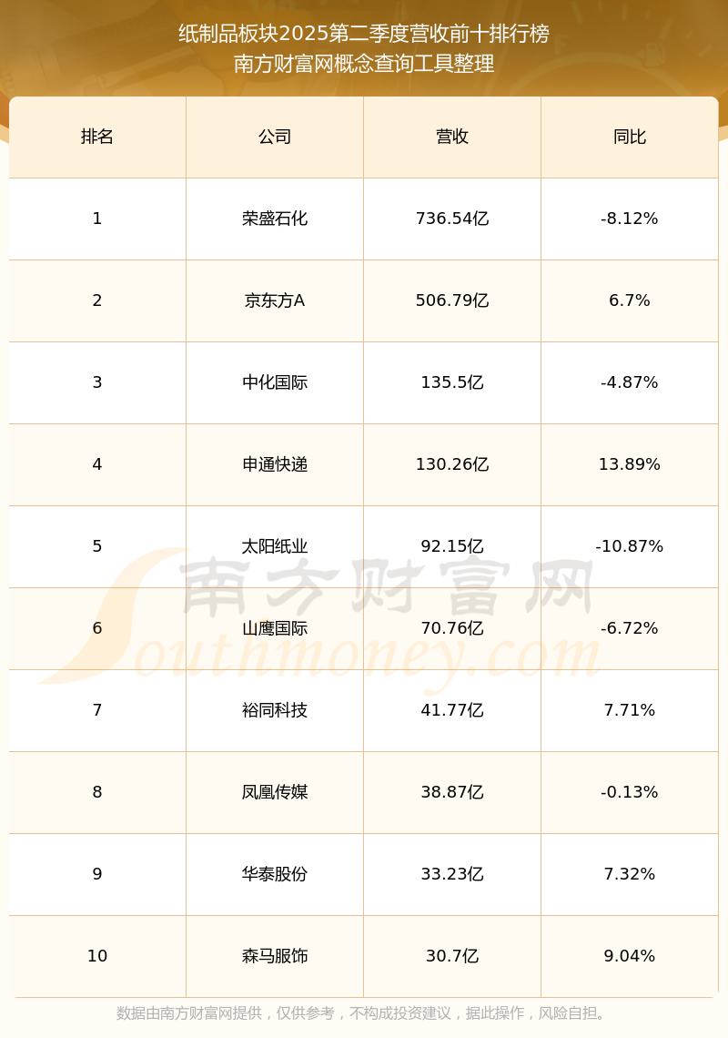 按照南方財(cái)富網(wǎng)概念查詢工具統(tǒng)計(jì),該股所屬板塊為紙制品板塊,該板塊共有67只股票,仙鶴股份2025第二季度營(yíng)收在該板塊中排名為第12名,該板塊2025第二季度營(yíng)收排名前十的股票如下表: