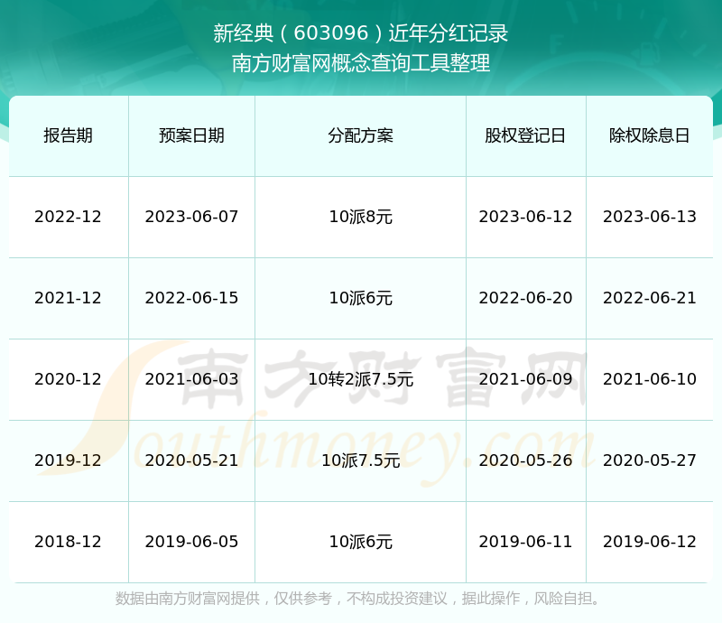 一、新經(jīng)典(603096)股票分紅記錄