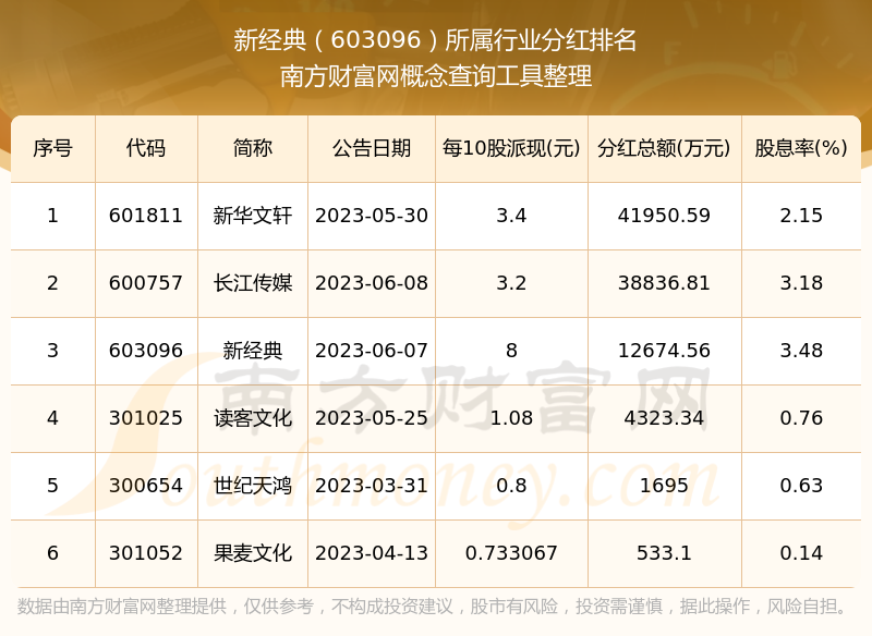 二、新經(jīng)典603096行業(yè)分紅排名