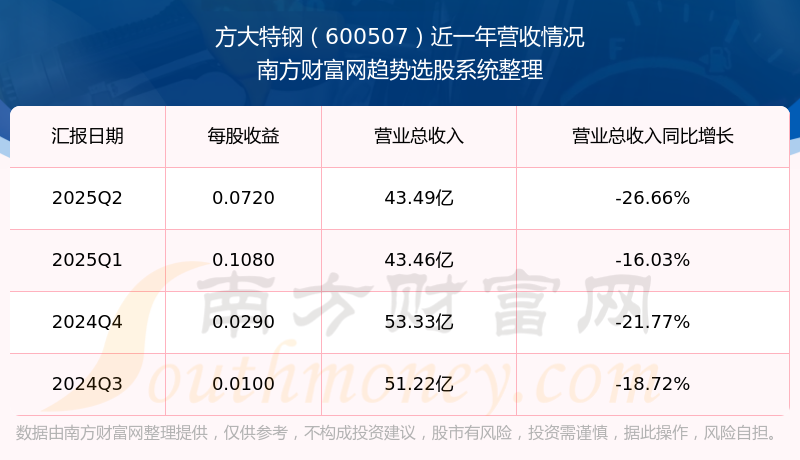 在2025年第二季度,方大特鋼的業(yè)績(jī)表現(xiàn),主營(yíng)業(yè)務(wù)收入達(dá)到43.49億元,實(shí)現(xiàn)了-26.66%的同比增長(zhǎng)率。同時(shí),公司歸母凈利潤(rùn)錄得1.55億元,同比增長(zhǎng)122.87%。