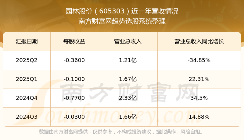 財(cái)報(bào)顯示,2025年第二季度園林股份營收1.21億元,同比增長-34.85%,凈利潤-5871.3萬元,同比增長-37.83%。