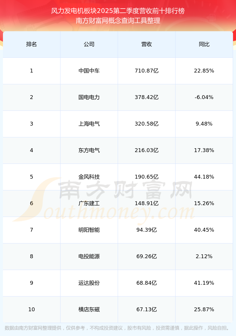 按照南方財富網(wǎng)概念查詢工具統(tǒng)計,該股所屬板塊為風(fēng)力發(fā)電機(jī)板塊,該板塊共有45只股票,三一重能2025第二季度營收在該板塊中排名為第11名,該板塊2025第二季度營收排名前十的股票如下表: