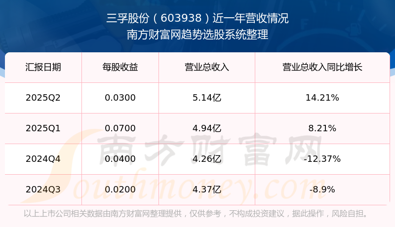 三孚股份披露了2025年第二季度財(cái)報(bào)。報(bào)告顯示,三孚股份2025年第二季度實(shí)現(xiàn)營(yíng)收5.14億元,同比14.21%;歸母凈利潤(rùn)1145.56萬(wàn)元,同比-62.16%。