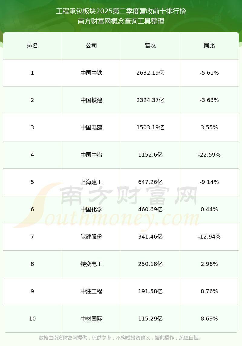 按照南方財(cái)富網(wǎng)概念查詢工具統(tǒng)計(jì),該股所屬板塊為工程承包板塊,該板塊共有22只股票,鎮(zhèn)海股份2025第二季度營收在該板塊中排名為第22名,該板塊2025第二季度營收排名前十的股票如下表: