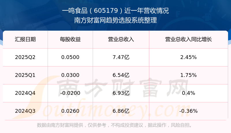 2025年第二季度,一鳴食品營(yíng)收同比2.45%,凈利潤(rùn)同比17.45%。