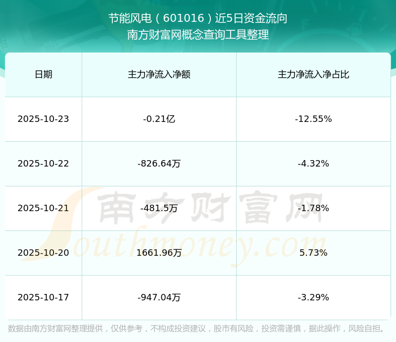 二、節(jié)能風(fēng)電(601016)近期盤面、資金面情況