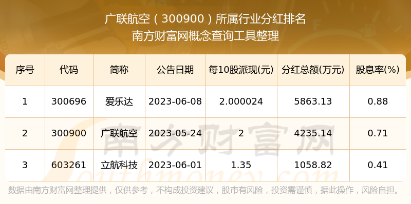 二、廣聯(lián)航空300900行業(yè)分紅排名