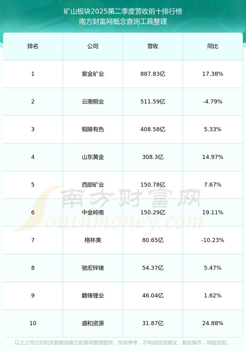 按照南方財富網(wǎng)概念查詢工具統(tǒng)計,該股所屬板塊為礦山板塊,該板塊共有30只股票,中信重工2025第二季度營收在該板塊中排名為第30名,該板塊2025第二季度營收排名前十的股票如下表: