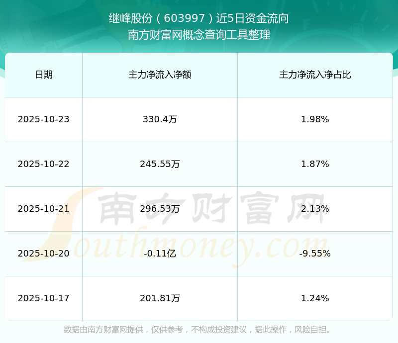 二、繼峰股份(603997)近期盤面、資金面情況