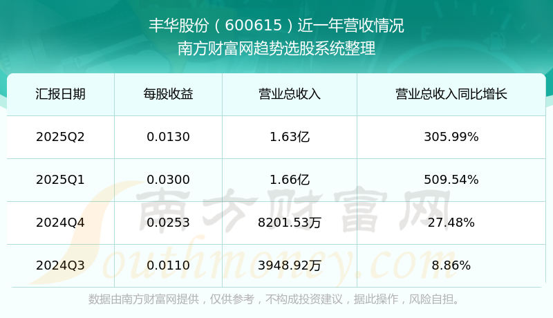 一、豐華股份(600615)股票營收情況