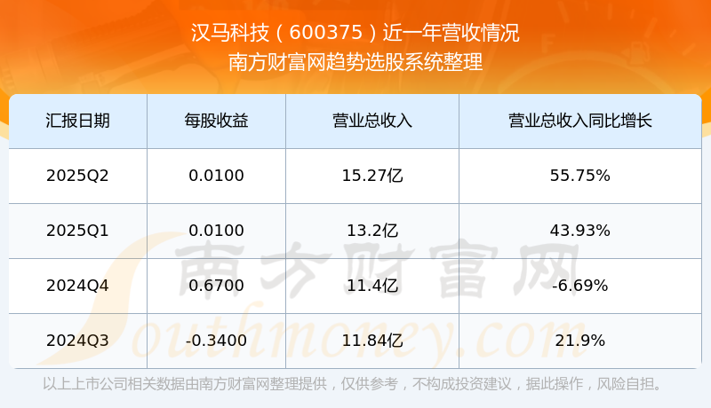 A股上市公司漢馬科技(代碼:600375)發(fā)布2025年第二季度財報,公司2025年第二季度歸屬于上市公司股東的凈利潤為1596.9萬元,凈利潤同比增長118.39%,環(huán)比增長35.8%。
