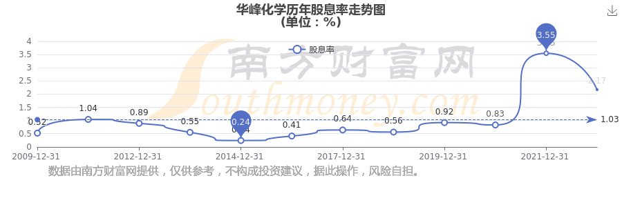 近年華峰化學年度股息率走勢如下圖: