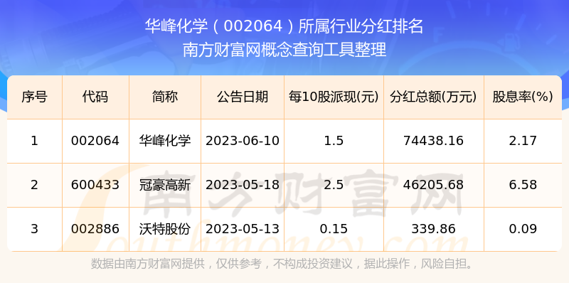 二、華峰化學002064行業(yè)分紅排名