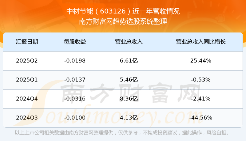 中材節(jié)能2025年第二季度公司實(shí)現(xiàn)營業(yè)收入6.61億元,同比25.44%;歸母凈利潤-1208.05萬元,同比-291.78%。