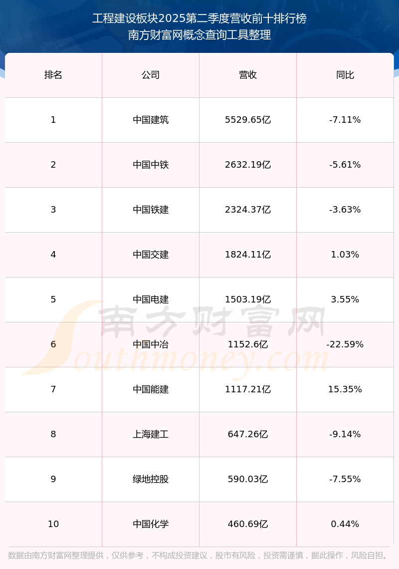 按照南方財(cái)富網(wǎng)概念查詢工具統(tǒng)計(jì),該股所屬板塊為工程建設(shè)板塊,該板塊共有140只股票,陜建股份2025第二季度營(yíng)收在該板塊中排名為第11名,該板塊2025第二季度營(yíng)收排名前十的股票如下表: