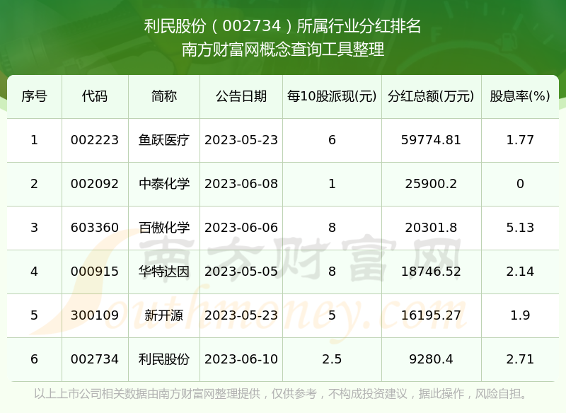 二、利民股份002734行業(yè)分紅排名