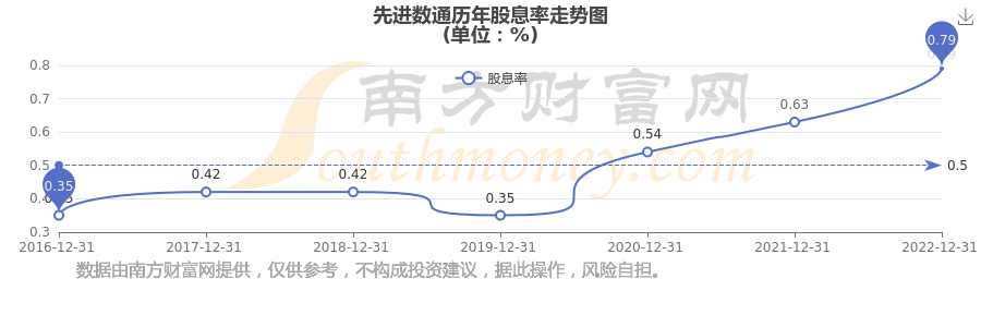 近年先進(jìn)數(shù)通年度股息率走勢(shì)如下圖: