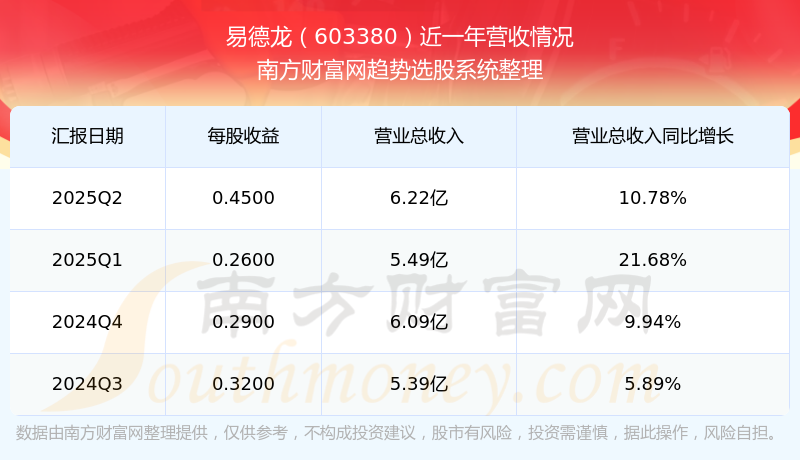易德龍股票近一年營收情況如下表:
