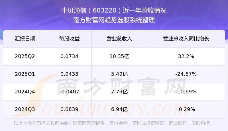 中貝通信2025年第二季度公司實現(xiàn)營業(yè)收入10.35億元,同比32.2%;歸母凈利潤3182.61萬元,同比-45.98%。