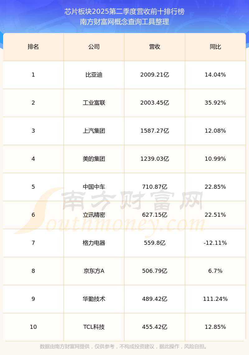 按照南方財(cái)富網(wǎng)概念查詢工具統(tǒng)計(jì),該股所屬板塊為芯片板塊,該板塊共有913只股票,納芯微2025第二季度營收在該板塊中排名為第319名,該板塊2025第二季度營收排名前十的股票如下表: