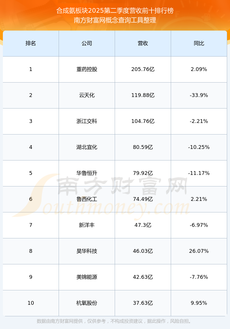 按照南方財富網(wǎng)概念查詢工具統(tǒng)計,該股所屬板塊為合成氨板塊,該板塊共有43只股票,陜西黑貓2025第二季度營收在該板塊中排名為第15名,該板塊2025第二季度營收排名前十的股票如下表: