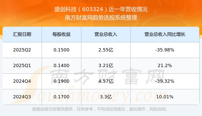 盛劍科技(603324)披露2025年第二季度報告,報告期實現(xiàn)營收2.55億元,同比-35.98%;歸母凈利潤2157.46萬元,同比-54.32%;扣非凈利潤1942.07萬元,同比-55.85%;基本每股收益0.15元。