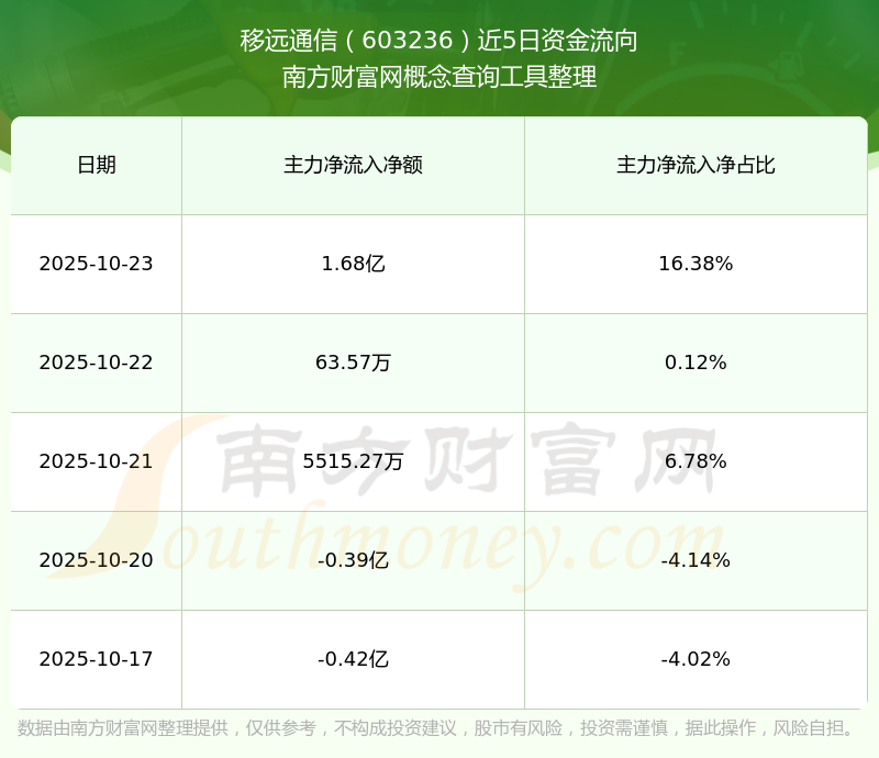 二、移遠(yuǎn)通信(603236)近期盤面、資金面情況