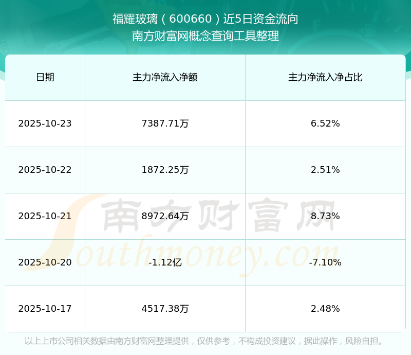 二、福耀玻璃(600660)近期盤面、資金面情況