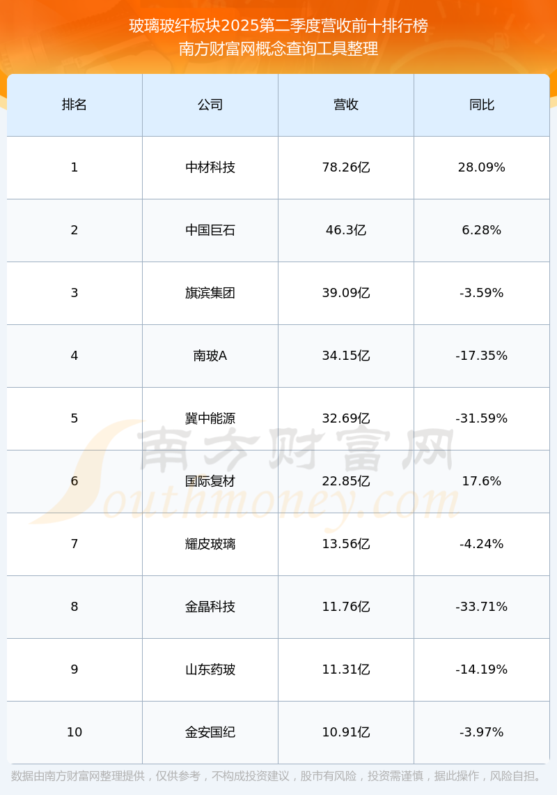 按照南方財(cái)富網(wǎng)概念查詢工具統(tǒng)計(jì),該股所屬板塊為玻璃玻纖板塊,該板塊共有23只股票,福耀玻璃2025第二季度營收在該板塊中排名為第23名,該板塊2025第二季度營收排名前十的股票如下表: