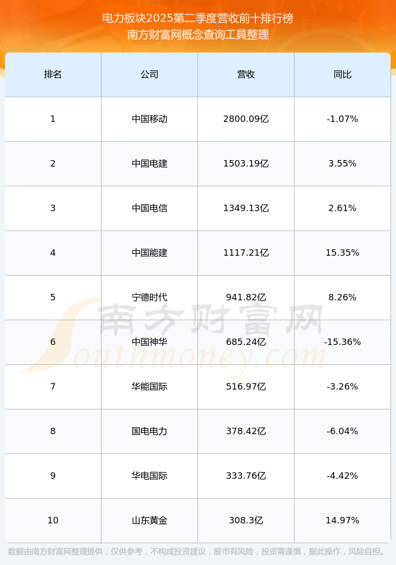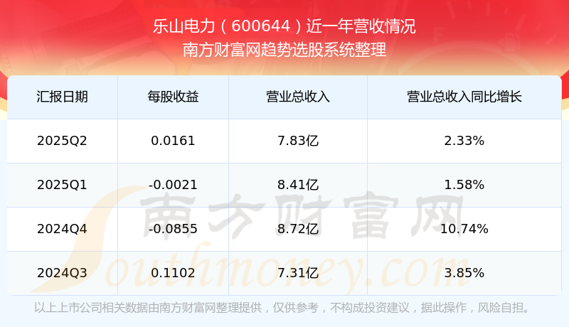 按照南方財(cái)富網(wǎng)概念查詢工具統(tǒng)計(jì),該股所屬板塊為電力板塊,該板塊共有237只股票,樂山電力2025第二季度營收在該板塊中排名為第145名,該板塊2025第二季度營收排名前十的股票如下表: