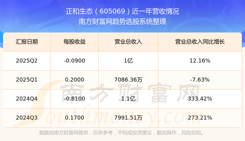 一、正和生態(tài)(605069)股票營(yíng)收情況