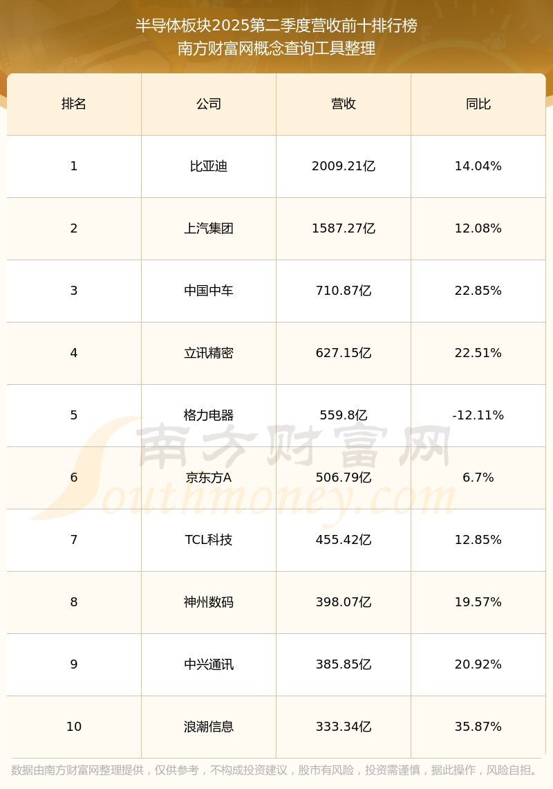 按照南方財(cái)富網(wǎng)概念查詢工具統(tǒng)計(jì),該股所屬板塊為半導(dǎo)體板塊,該板塊共有529只股票,炬光科技2025第二季度營(yíng)收在該板塊中排名為第403名,該板塊2025第二季度營(yíng)收排名前十的股票如下表: